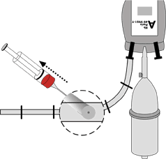Ponctionnez un segment de la tubulure directement à laide dune séringue et du Perce-capsule spécial et épointé (PC).